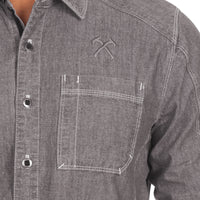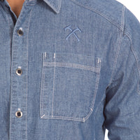 Expertly crafted from mid-weight 100% cotton chambray, embroidered with the Winkler RnD crossed tomahawks, and pre-washed for comfort, Anvil is built to last. Paired with durable metal buttons and sewn in California, this is a true American classic.