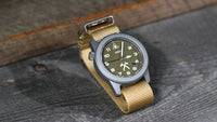 - 49.5mm lug to lug 22mm drilled lugs with 1.8mm shoulderless spring bars, supplied with a 3-ring LASH ballistic nylon strap