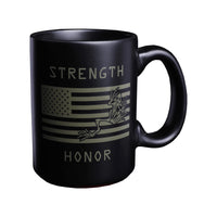 Start your morning with a little taste of liberty from the new Jack Carr coffee mug. The crossed Winkler Tomahawks, U.S. Flag, and the words STRENGTH & HONOR will set the tone as you prepare to crush your day!
