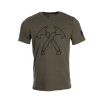 Clean lines. Sharp impact. The Crossed Hawks Outline Tee redefines a fan-favorite with an outlined Crossed Tomahawks emblem on the chest, a subtle bone frog on the nape, and a bold American Flag on the sleeve. Available in two striking colorways, this tee is for those who move forward—never fading, always focused.