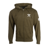 Built for cool mornings, hard days, and everything in between, the Crossed Hawks Zip Hoodie is equal parts comfort and grit. Designed with soft, durable fabric and bold detailing—including a small Crossed Hawks emblem on the chest and an American Flag on the sleeve—this piece comes in Heather Army Green and Heather Dark Grey. It’s for those who carry their convictions wherever they go.
