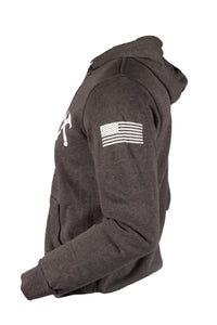 This fall, elevate your wardrobe with the Crossed Hawks Zip up Hoodie. This super soft hoodie showcases the iconic crossed hawks on the chest, accompanied by a flag design on the arm.