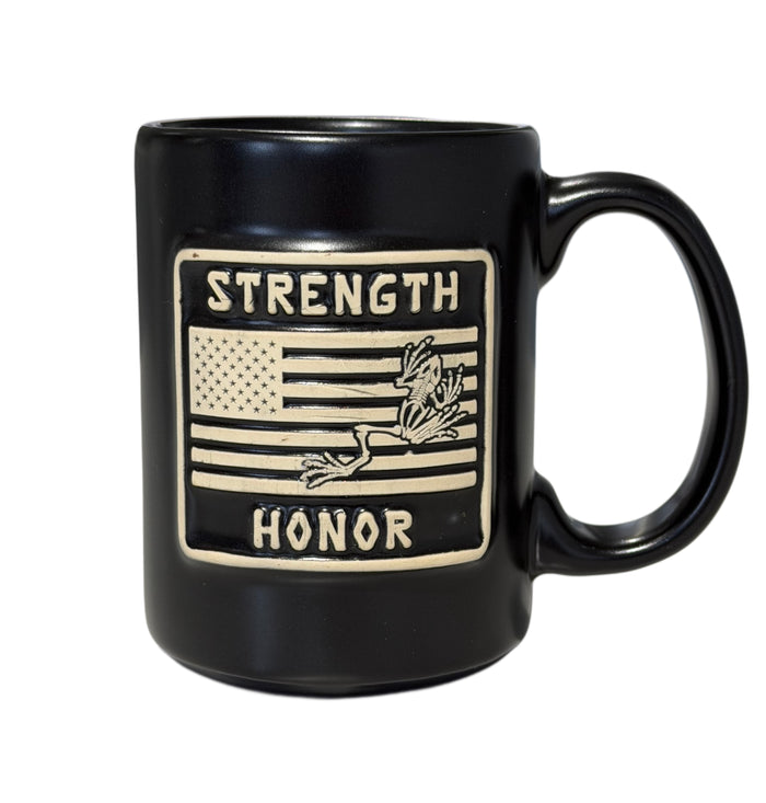 Red Glazed Crossed Hawks Barrel Ceramic Mug