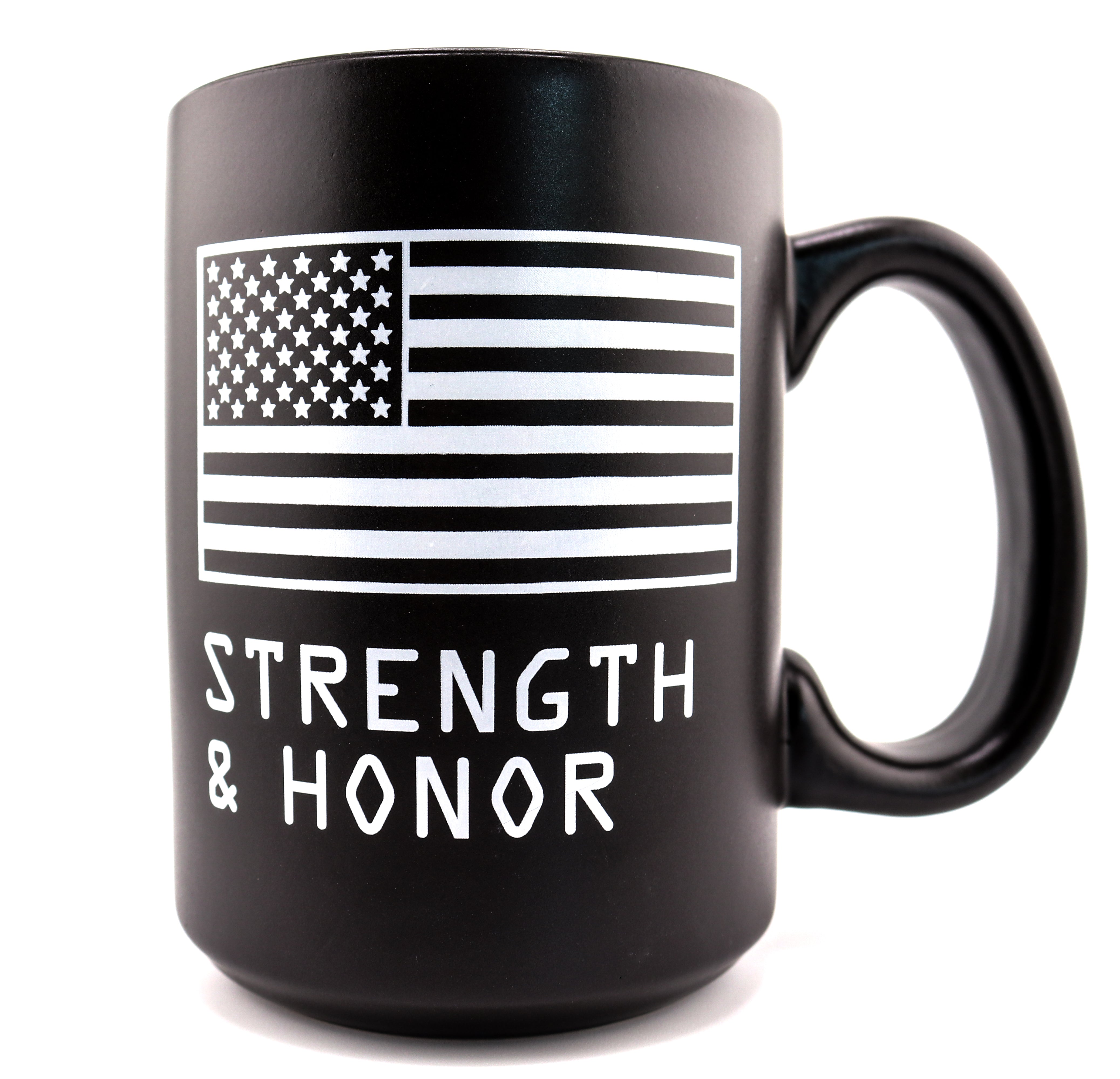 Start your morning with a little taste of liberty from the original Jack Carr coffee mug. The crossed Winkler Tomahawks, U.S. Flag, and the words STRENGTH & HONOR will set the tone as you prepare to crush your day!