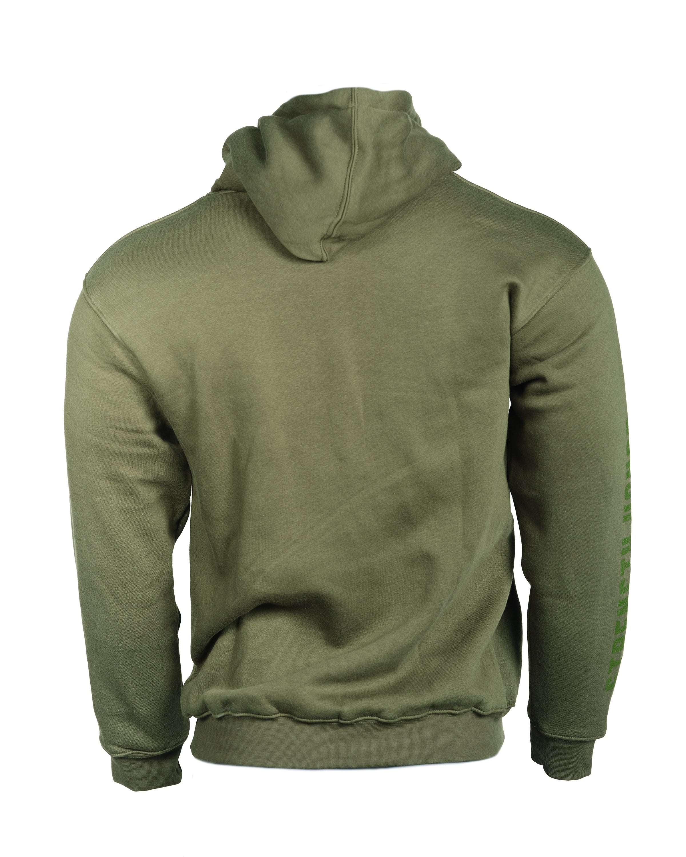These hoodies feature Strength + Honor down the right sleeve with the crossed tomahawk on the left chest